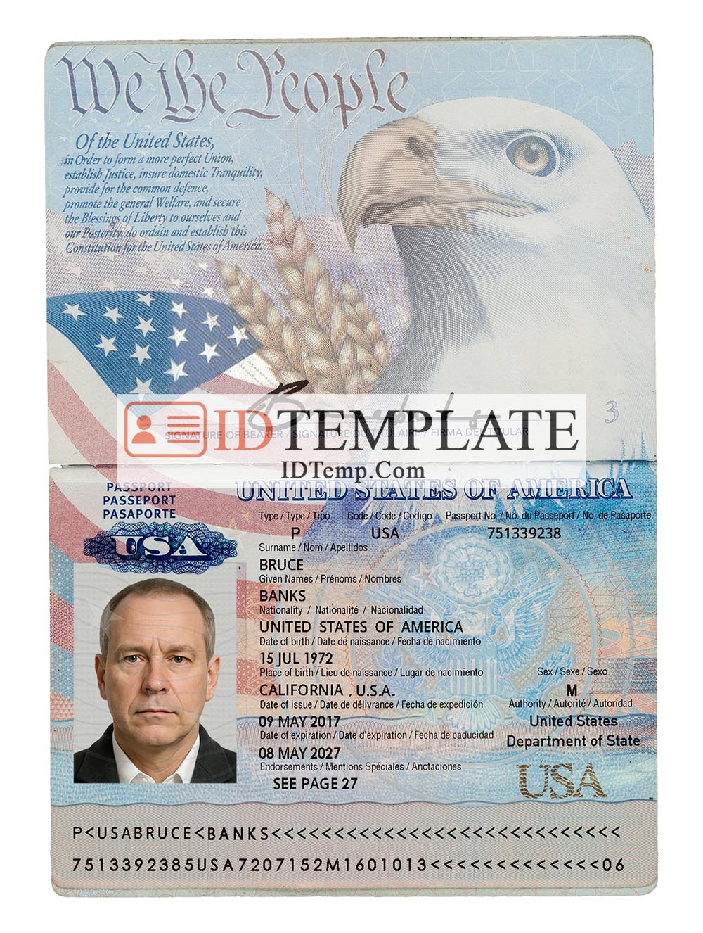 USA Passport Template, fully editable PSD in high quality. Layer-based and easy to customize using Photoshop. Fonts included. You can edit all details such as name, address, license number, ID number, date of birth, height, weight, expiration date, picture/photo, signature and more.